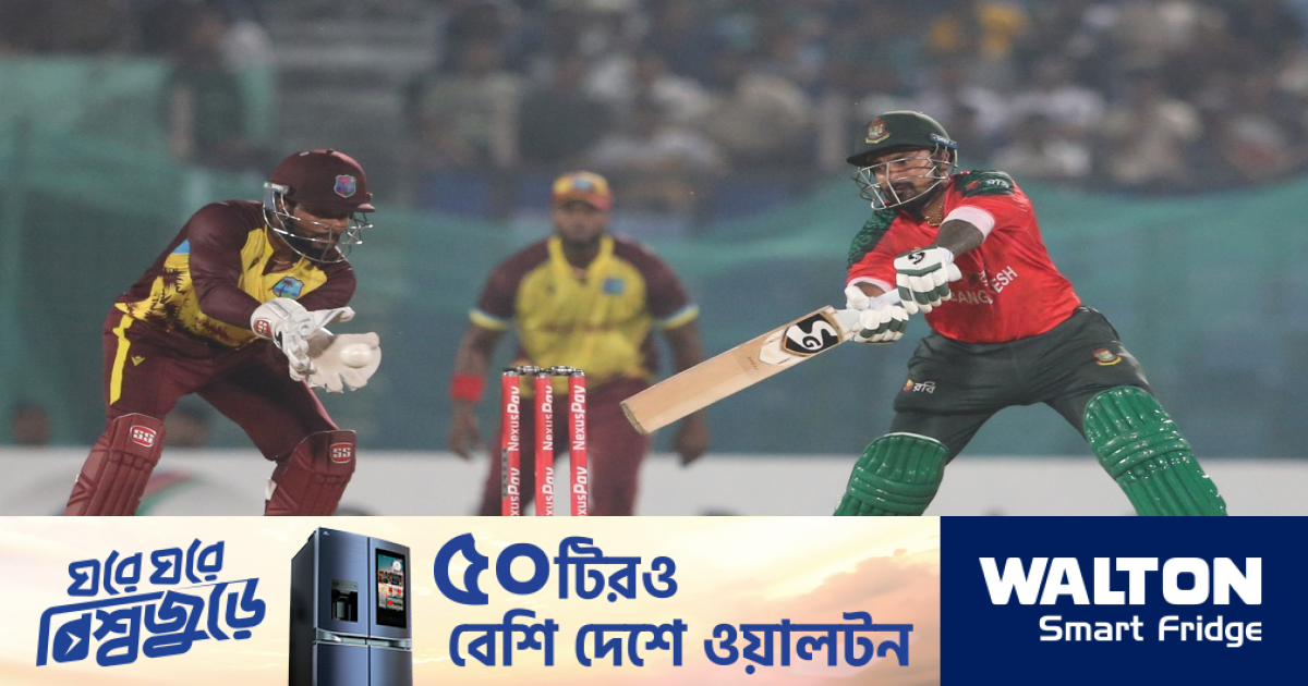 এর আগে টস জিতে ব্যাটিং করতে নেমে উদ্বোধনী জুটিতে ৫৯ রান যোগ করেন অ্যালিক আথানাজে ও ব্রেন্ডন কিং। তারা দুজনই ফিরেছেন ত্রিশ পেরিয়ে। গোল্ডেন ডাক মারেন শেরফানে রাদারফোর্ড। শেষের দিকে শাই হোপ ২৮ বলে ৪৬ ও রভম্যান পাওয়েল সমান বলে ৪৪ রান করে ওয়েস্ট ইন্ডিজকে ১৬৫ রানের পুঁজি এনে দেন। বাংলাদেশের হয়ে তাসকিন আহমেদ দুইটি ও রিশাদ নেন একটি উইকেট।