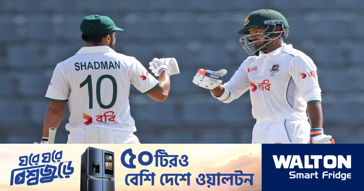দেখেশুনে খেলতে খেলতে নিজের হাফ সেঞ্চুরি পেয়ে যান সাদমান। ৪৯ বলে ক্যারিয়ারের সপ্তম হাফ সেঞ্চুরি করেন তিনি। ২০.৪ ওভারে দলীয় শতক পূরণ করে বাংলাদেশ। একইসাথে ওপেনিং জুটিরও সেঞ্চুরি হয়। এর একটু পরই (৭২ বলে) হাফ সেঞ্চুরি করেন জয়। লাঞ্চ থেকে ফিরে ওপেনিং জুটিতে দেড়শ রান পার করেন বাংলাদেশের দুই ওপেনার। ৩৬ ওভারে আসে ১৫০ রান।