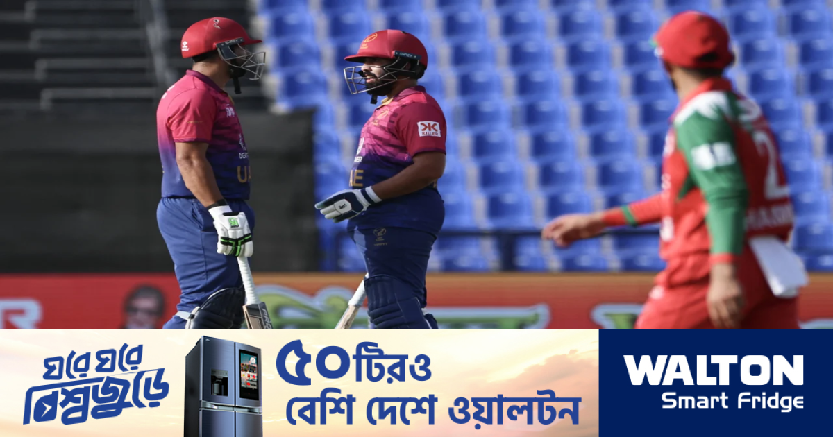 সময় শ্রীভাস্তর বলে ফিরেছেন বোল্ড হয়ে। পরবর্তীতে মোহাম্মদ জুহাইবকে সঙ্গে নিয়ে সংযুক্ত আরব আমিরাতের রান বাড়িয়েছেন। ৪১ বলে হাফ সেঞ্চুরি পেয়েছেন ওয়াসিম। স্বাগতিকদের অধিনায়ক শেষ পর্যন্ত আউট হয়েছেন শেষ ওভারে ৬৯ রানের ইনিংস খেলে। তাদের হয়ে জুহাইব ২১ ও হার্শিত কৌশিক ১৯ রান করেছেন। ওমানের হয়ে দুইটি উইকেট পেয়েছেন রামানন্দী।