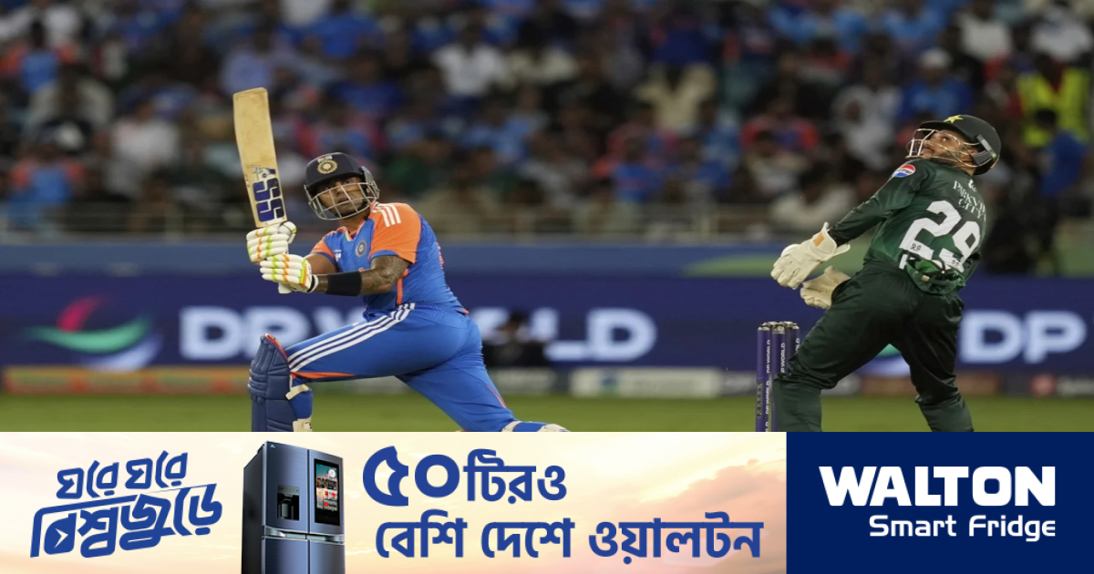 Suryakumar put on 56 runs with left-hander Tilak Varma, who hit 31 before being bowled by Saim Ayub.