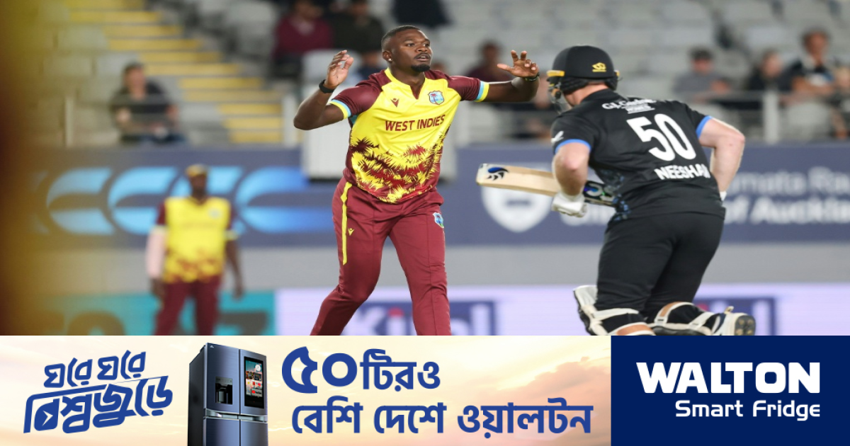 The Black Caps struck twice in the powerplay, Brandon King and Alick Athanaze falling to Jacob Duffy and Kyle Jamieson respectively to leave West Indies 32-2 after six overs.