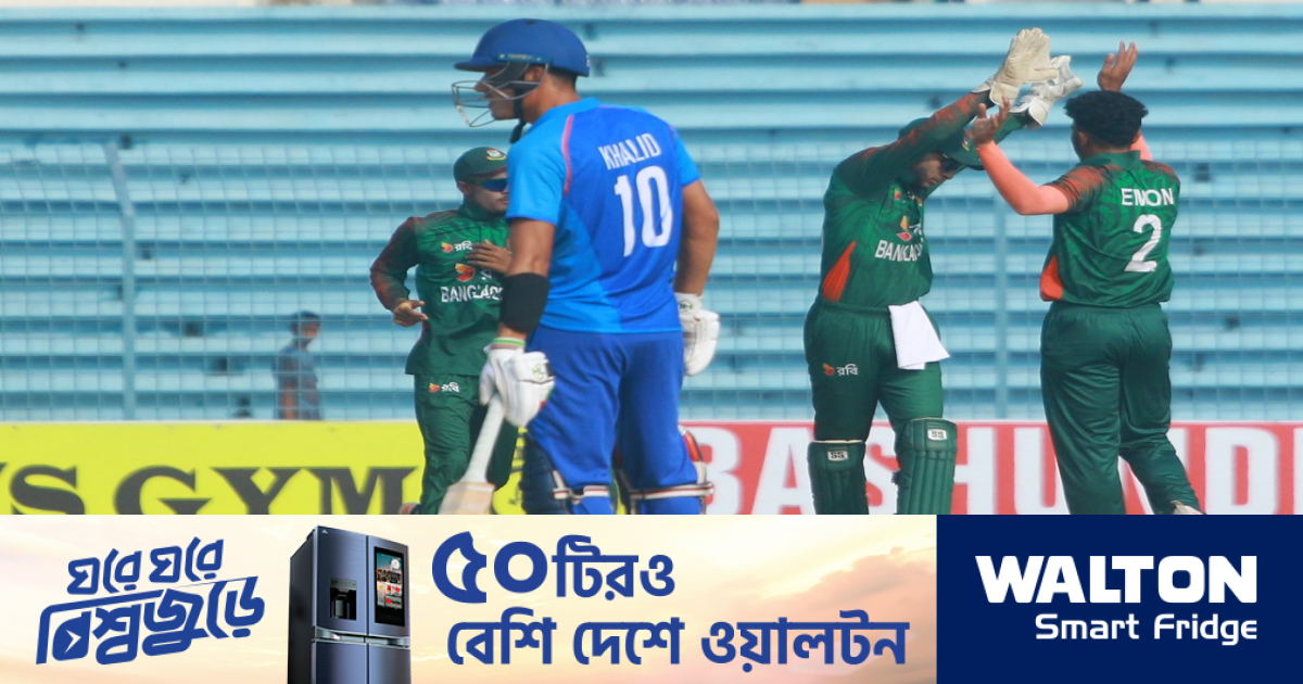 বাংলাদেশের হয়ে সাদ ইসলাম নিয়েছেন দুটি উইকেট। একটি উইকেট নিয়েছেন স্বাধীন ইসলাম। আফগানিস্তানের হয়ে সর্বোচ্চ ১১৬ বলে ১১২ রানের ইনিংস খেলেন ফয়সাল খান।