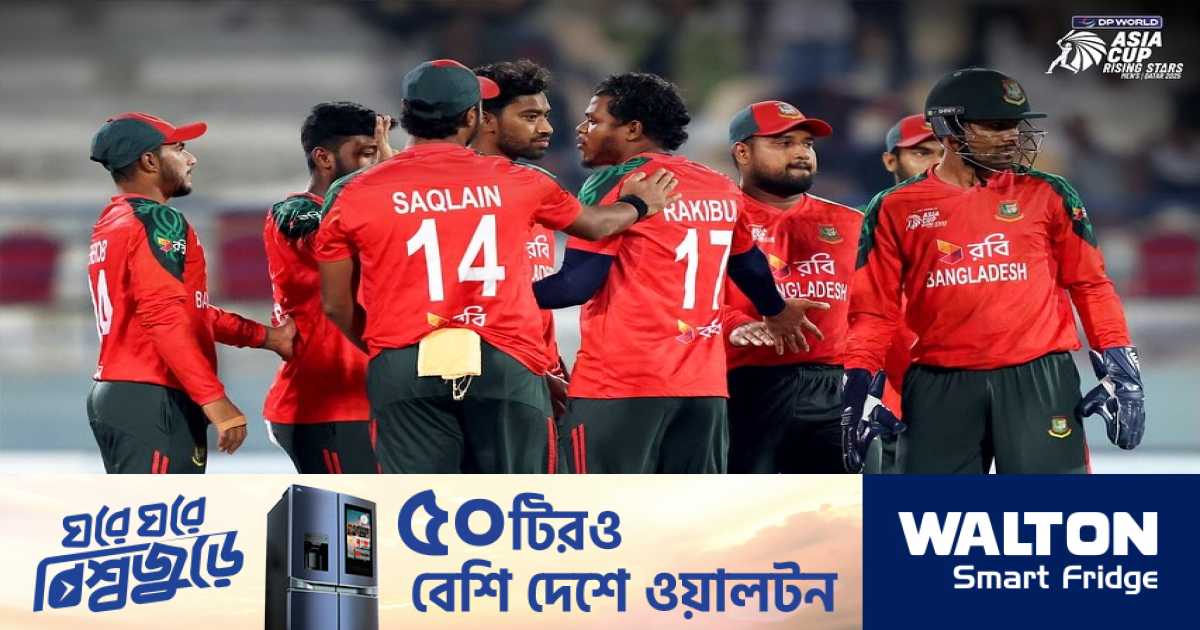 ব্যাট হাতে সুবিধা করতে পারেননি মাহফুজুর রহমান রাব্বি ও মৃত্যুঞ্জয় চৌধুরিও। তিন বলের ব্যবধানে তাদের দুজনকে আউট করেছেন মুকিম। শেষের দিকে খানিকটা আশা দেখিয়েছিলেন রাকিবুল ও মেহেরব। তাদের দুজনের জুটি জমে উঠলেও জয়ের জন্য যথেষ্ট ছিল না। দানিয়ালকে ছক্কা মারতে গিয়ে ১৯ রানে আউট হয়েছেন মেহেরব। ২৪ রানে ফিরতে হয়েছে রাকিবুলকে। শেষ দিকে রিপন ও সাকলাইনের ব্যাটে ১২৫ রান তোলে বাংলাদেশ। ম্যাচ গড়ায় সুপার ওভারে।