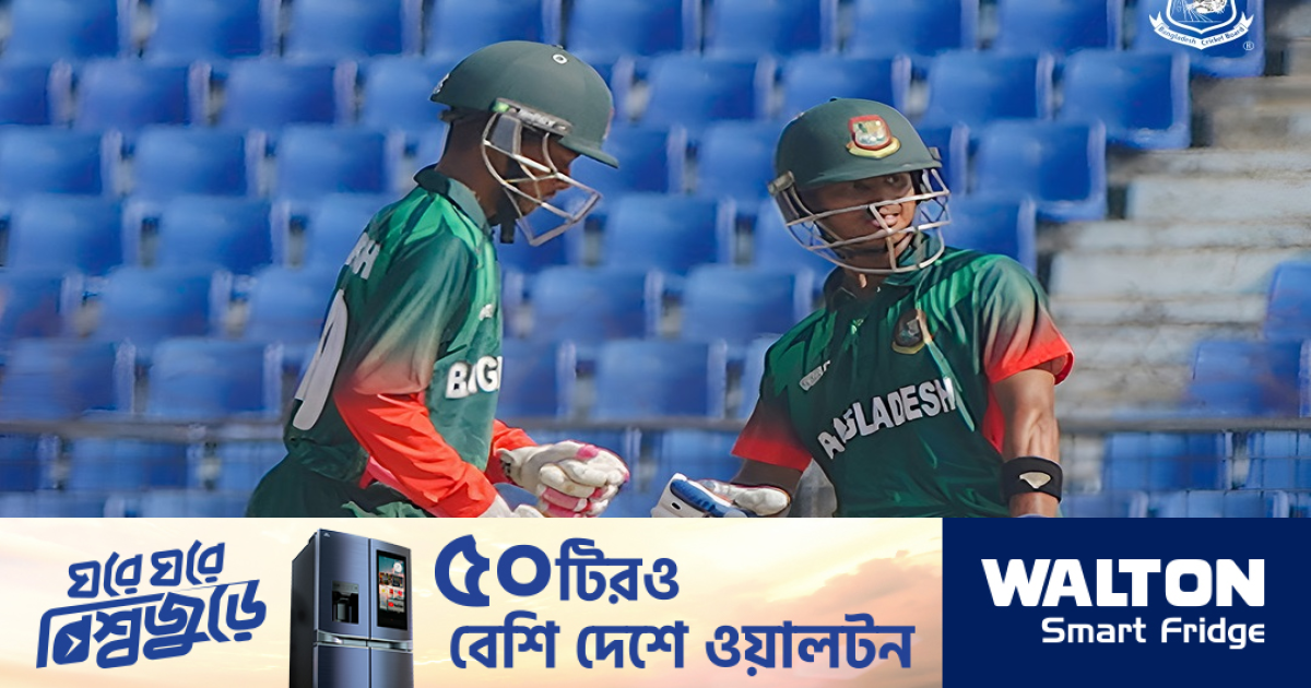 এর আগে টস হেরে ব্যাটিংয়ে নেমে শুরুটা ভালো করতে পারেনি বাংলাদেশ। ইনিংসের দ্বিতীয় ওভারেই ফেরেন জারিফ। দ্বিতীয় উইকেটে জুটি গড়ে তোলেন নাইম ও আদ্রিতো। তারা দুজনে মিলে যোগ করেন ৪৮ রান। ভালো শুরু পাওয়া ৪২ বলে ৩২ রান করে আউট হয়েছেন নাইম। তৃতীয় উইকেটে আকাশ রয় ও আদ্রিতো মিলে বাংলাদেশে টেনে নিয়ে গেছেন। দারুণ ব্যাটিংয়ে ৯১ রানের জুটি গড়েন তারা।