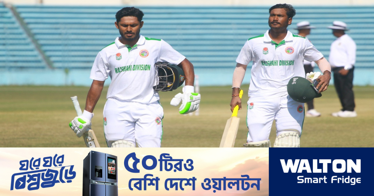 তানজিদ এদিন ১৫১ বলে ১৪০ রানের ইনিংস খেলেন। আর প্রিতম আউট হয়েছেন ১৫১ বলে ১৩৬ রান করে। শেষ দিকে তাওহীদ হৃদয় ৩৮ ও সাব্বির রহমান ১১ রানে অপরাজিত থাকেন। তারা ৫ উইকেট হারানোর পর ইনিংস ঘোষণা করে দেয়।