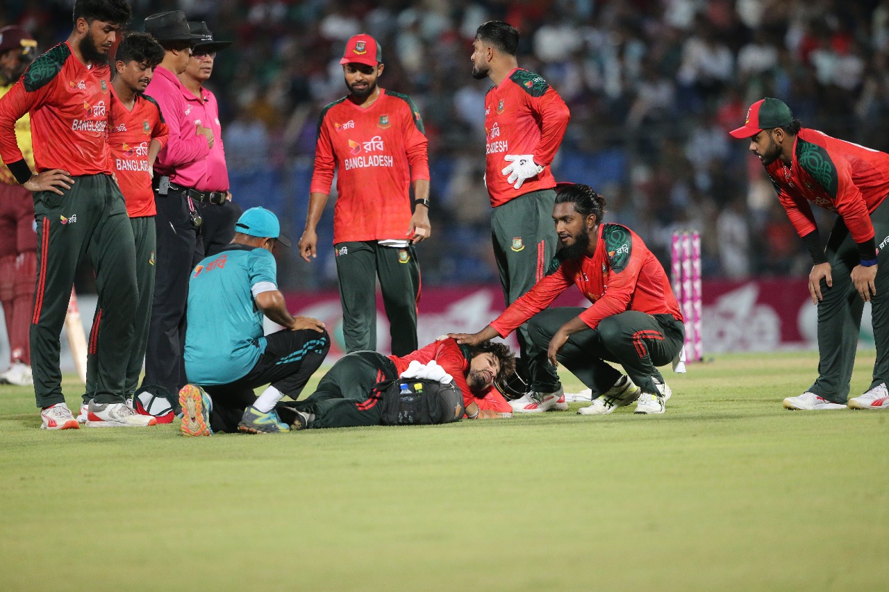 Team physio Bayejidul Islam rushed in immediately and attempted to provide initial treatment.
