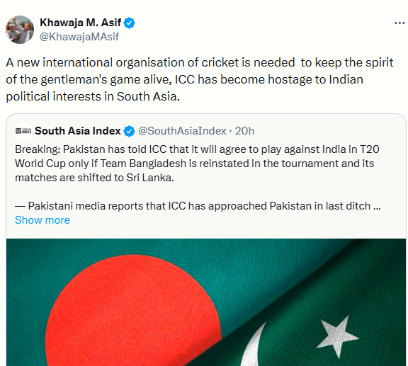 This time, Pakistan’s defence minister Khawaja Asif has gone a step further, calling for the formation of a new international cricket governing body, claiming the ICC has become captive to India’s political interests.